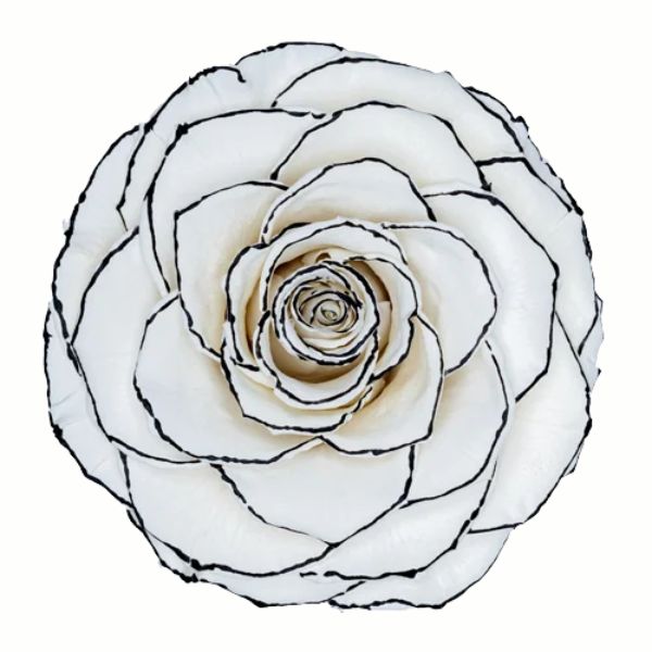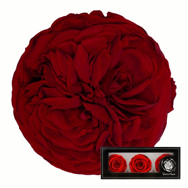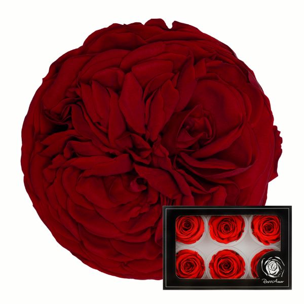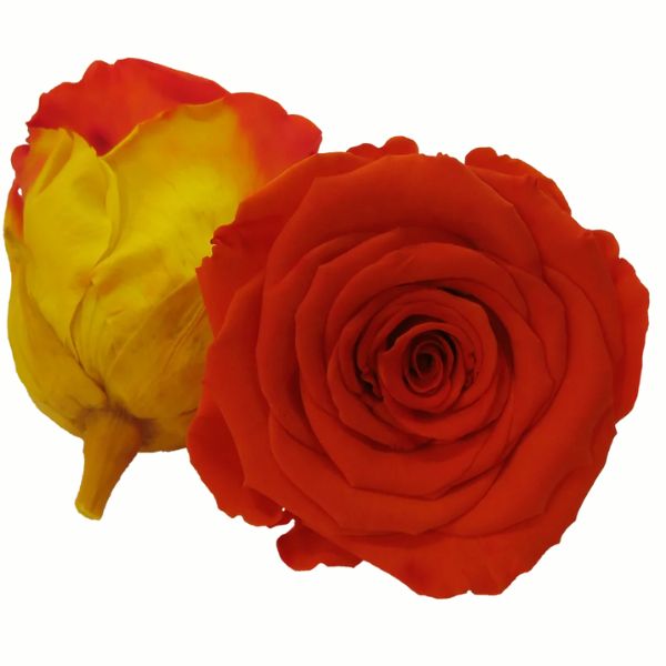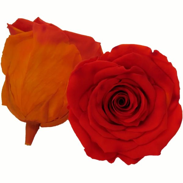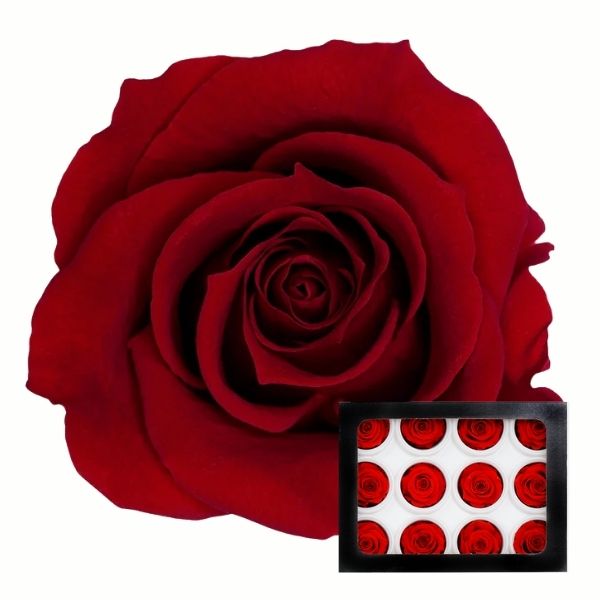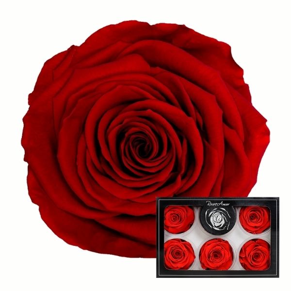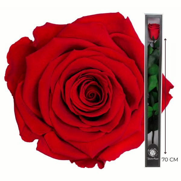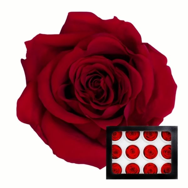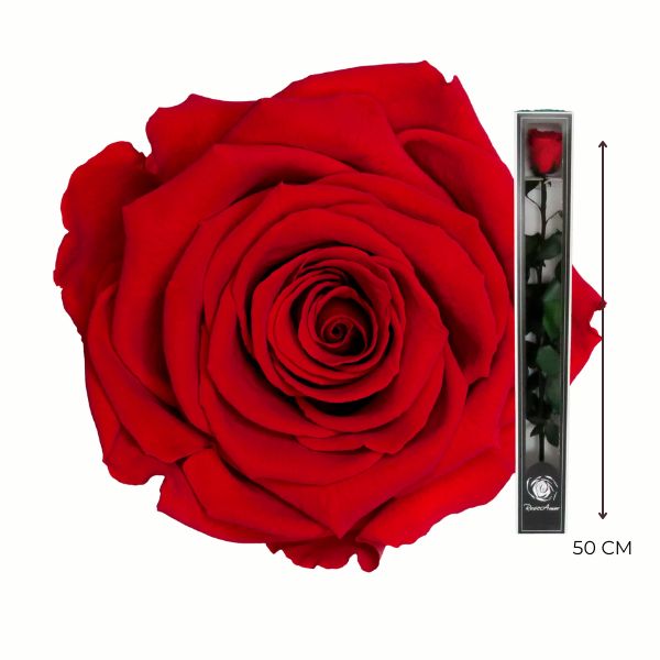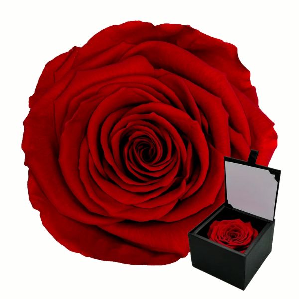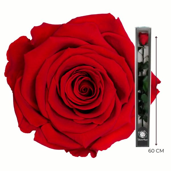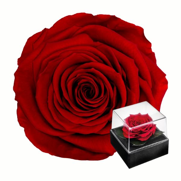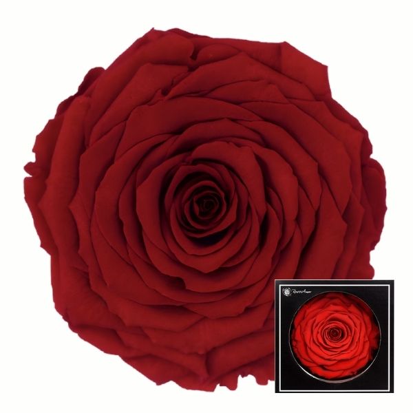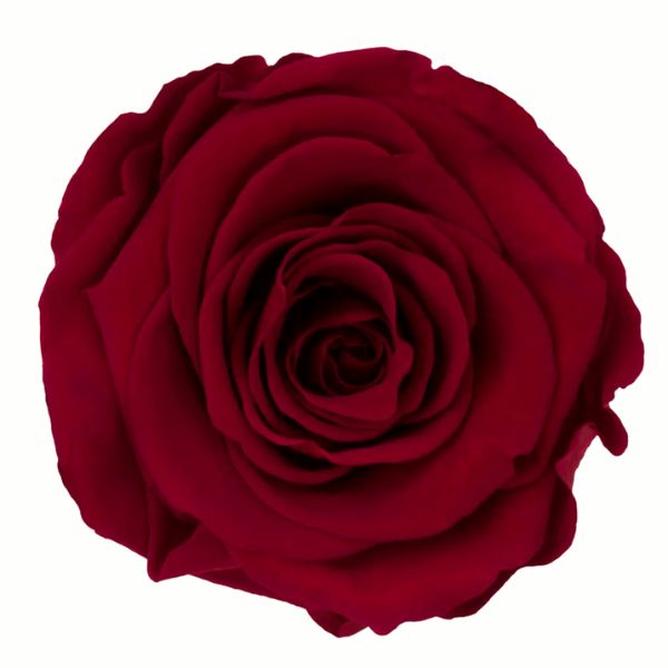 Rosa preservada natural que conserva la belleza, forma y suavidad características de la flor fresca. Su estabilidad y riqueza de color la convierten en una opción decorativa elegante y atemporal, muy valorada en composiciones florales de larga duración.
