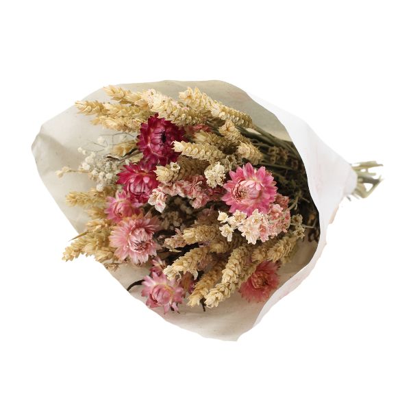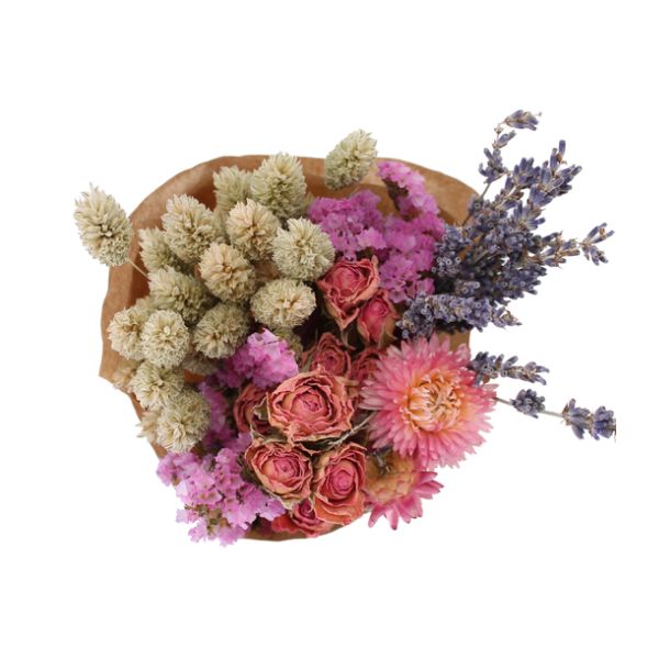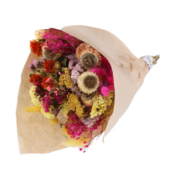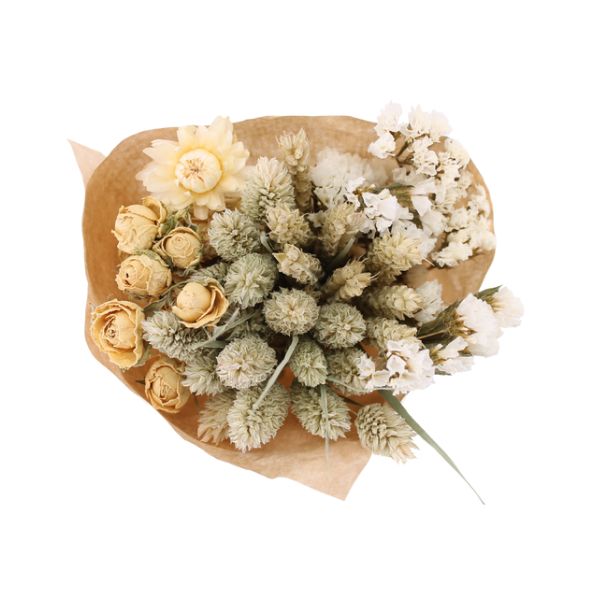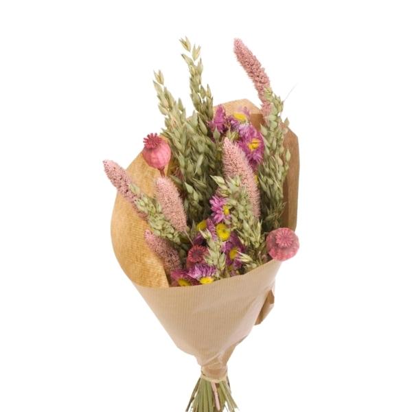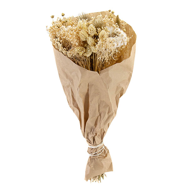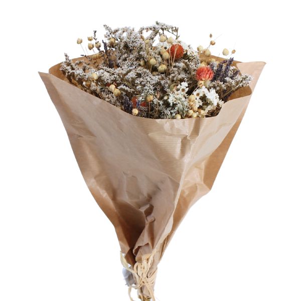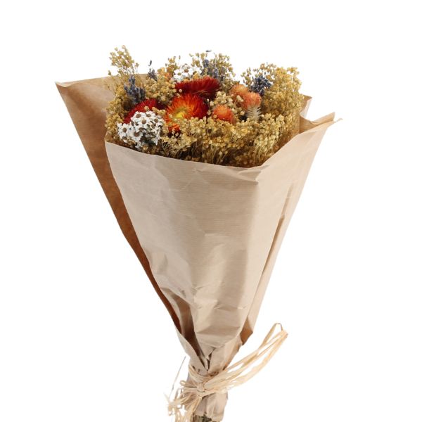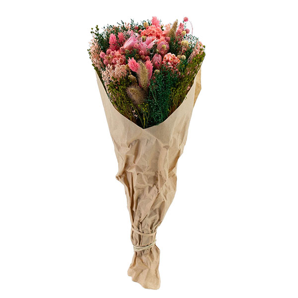 Bouquets de flores secas naturales compuestos por una cuidada combinación de variedades como pampas, eucalipto, lagurus, avena, trigo o siemprevivas. Destacan por su equilibrio de colores y texturas, su larga durabilidad y su aspecto natural, siendo una opción decorativa versátil y estable a lo largo del tiempo.